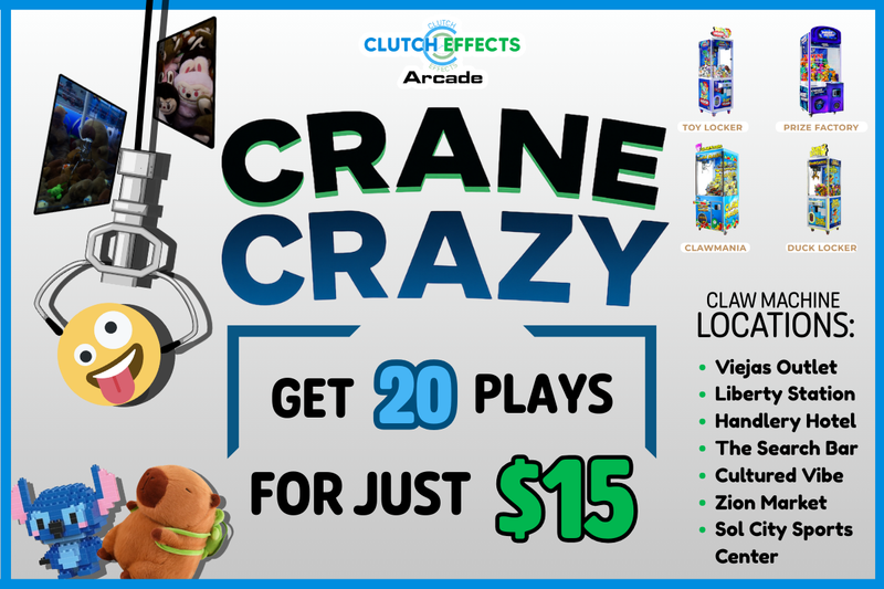 Do you love Crane Games!? Well, we have now activated our Crane Crazy promotion! When using the Tigapo app, you can now get 20 Plays on our Crane Games for only $15!!! This is the absolute best way to play our Crane Games.
