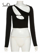This exquisite, slim-fitting Asymmetric Collar Crop Top is just the item you need to add an edge to your look. Crafted from soft cotton, this piece will stand out with its stylish asymmetric neckline and crop design--perfect for those who don’t want to shy away from fashion risks. This top is functional and comfortable enough for daily wear while being timelessly fashionable. Wear it with a pair of jeans or a skirt, and add other accessories as desired to create your own unique look. No matter what occasion you choose, this top makes a perfect statement that doesn't sacrifice comfort for style.