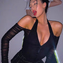 Looking for something unique and sexy to wear out on the town? Check out our halter t-shirt mesh long sleeve! This top is perfect for showing off your curves, with a slim fit and backless design. The v-neck neckline is both stylish and flattering, while the zip-up front makes it easy to get on and off. Plus, the mesh sleeve detail adds a touch of edge. The halter t-shirt mesh long sleeve is available in black or white and pairs perfectly with jeans, shorts, or skirts. So don't wait any longer, order yours today!