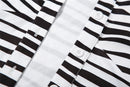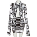 The Kendra Striped Two Piece Skirt Set is the perfect choice for a sophisticated wardrobe update. This two-piece set features a long length top with an elegant collared neckline, long sleeves and button front closure, and is finished off with a mini length skirt in a high rise silhouette and elastic waist for comfortable wear. The striking striped pattern adds richness to the look, while the slim fit design will flatter your figure. Crafted from soft polyester fabric, this outfit is easy to style for any occasion and is sure to be one of your go-tos all year round.